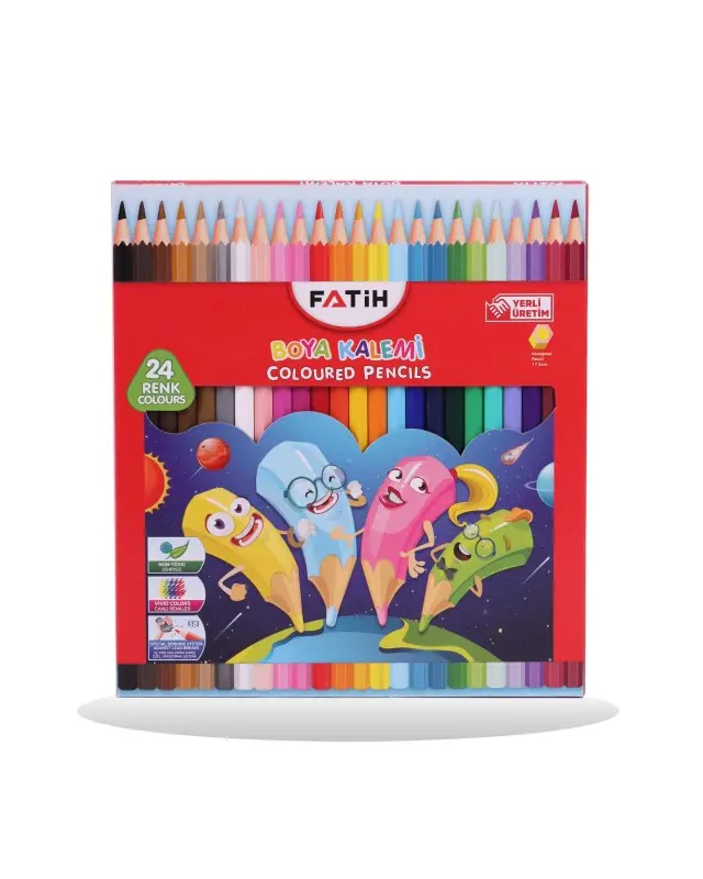 Le set de crayons de couleur Fatih 24/18 offre des teintes variées et une bonne qualité, idéal pour le dessin et le coloriage créatif.